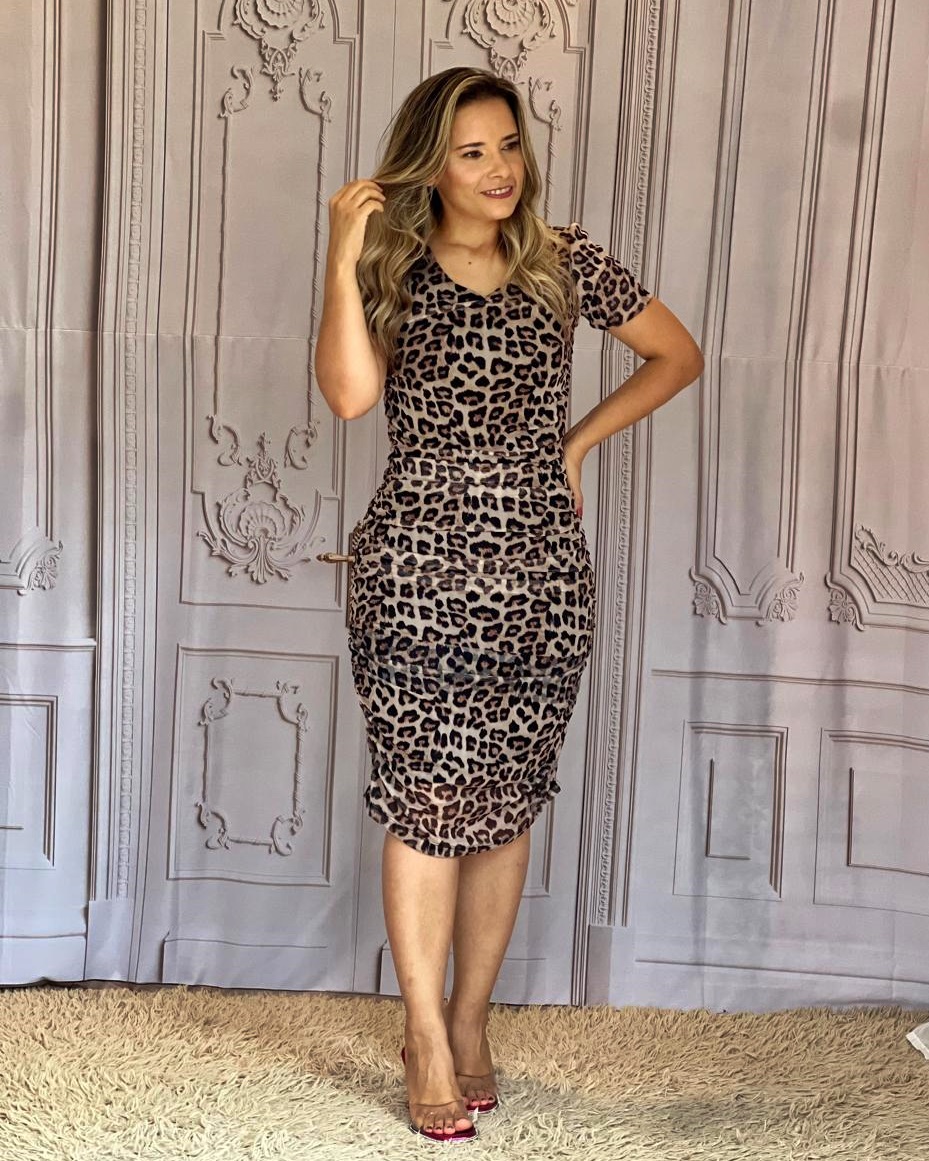 Vestido midi de tule franzido justo, poderoso,, com bastante elastano ! forrado!