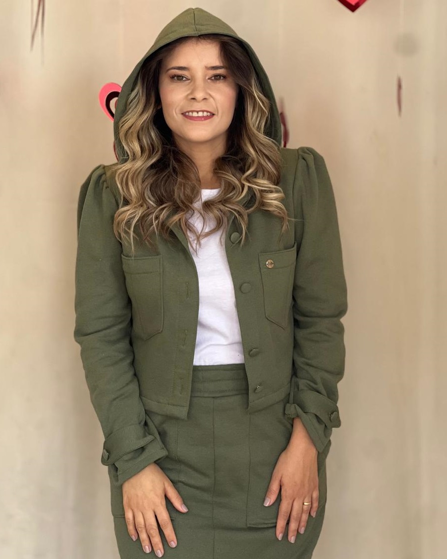 Casaqueto Bianca no moleton PA com elastano e flanelado por dentro, com botoes forrados, e gorro trazendo conforto e charme a peça!