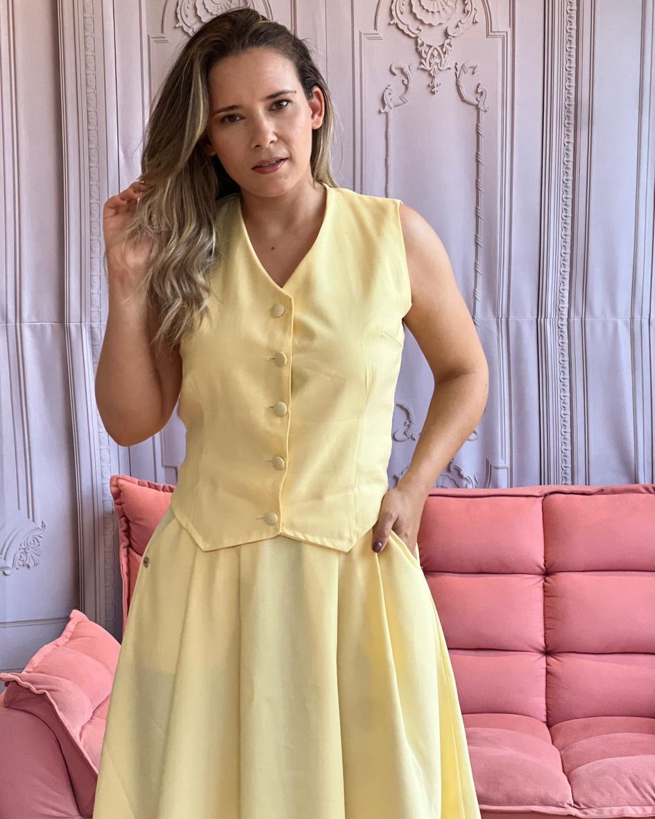 DESCRIÇÃO:Colete de listras no alfaitaria forrado duplo com botoes frontais forrados!