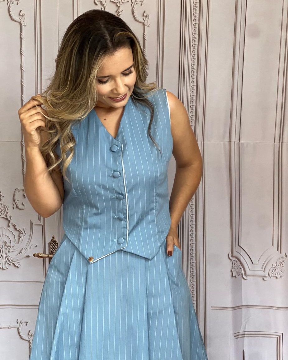 DESCRIÇÃO:Colete de listras no alfaitaria forrado duplo com botoes frontais forrados!