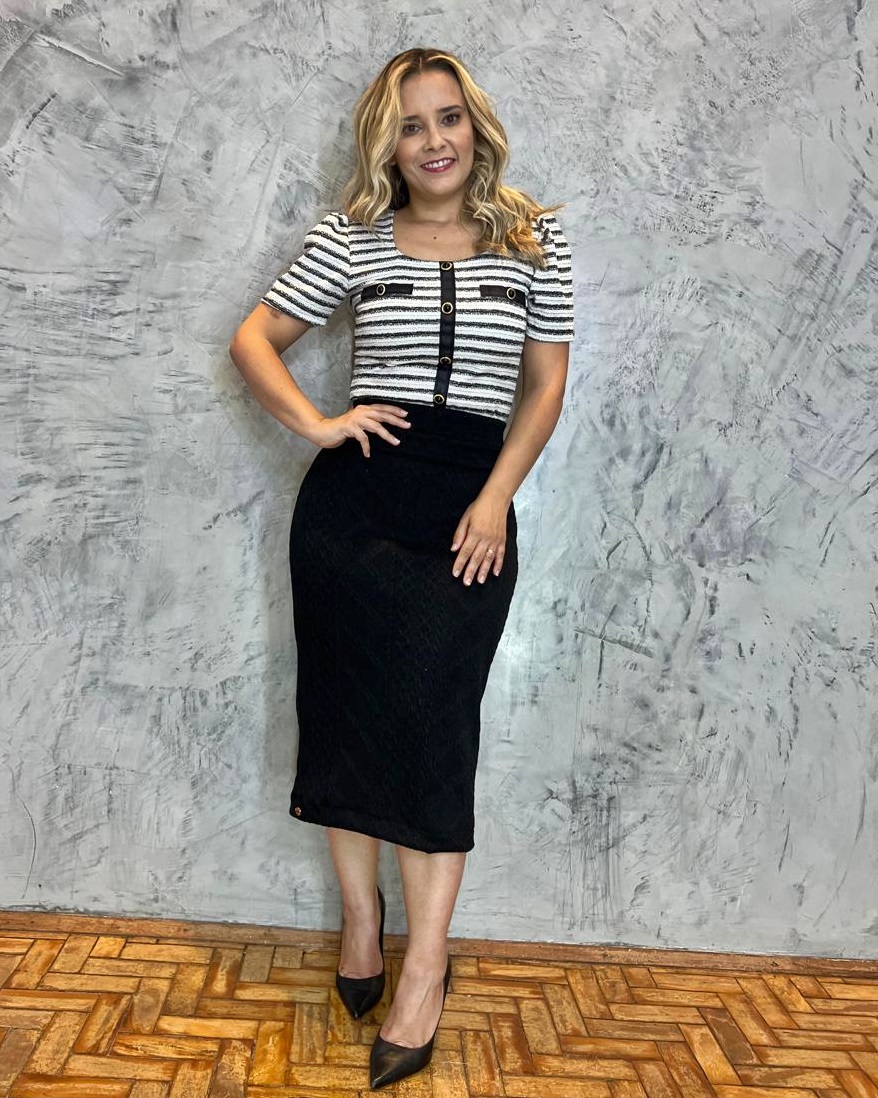 A Saia Berenice é confeccionada no tricot !com bastante elastano toda forrada!Super estilosa!