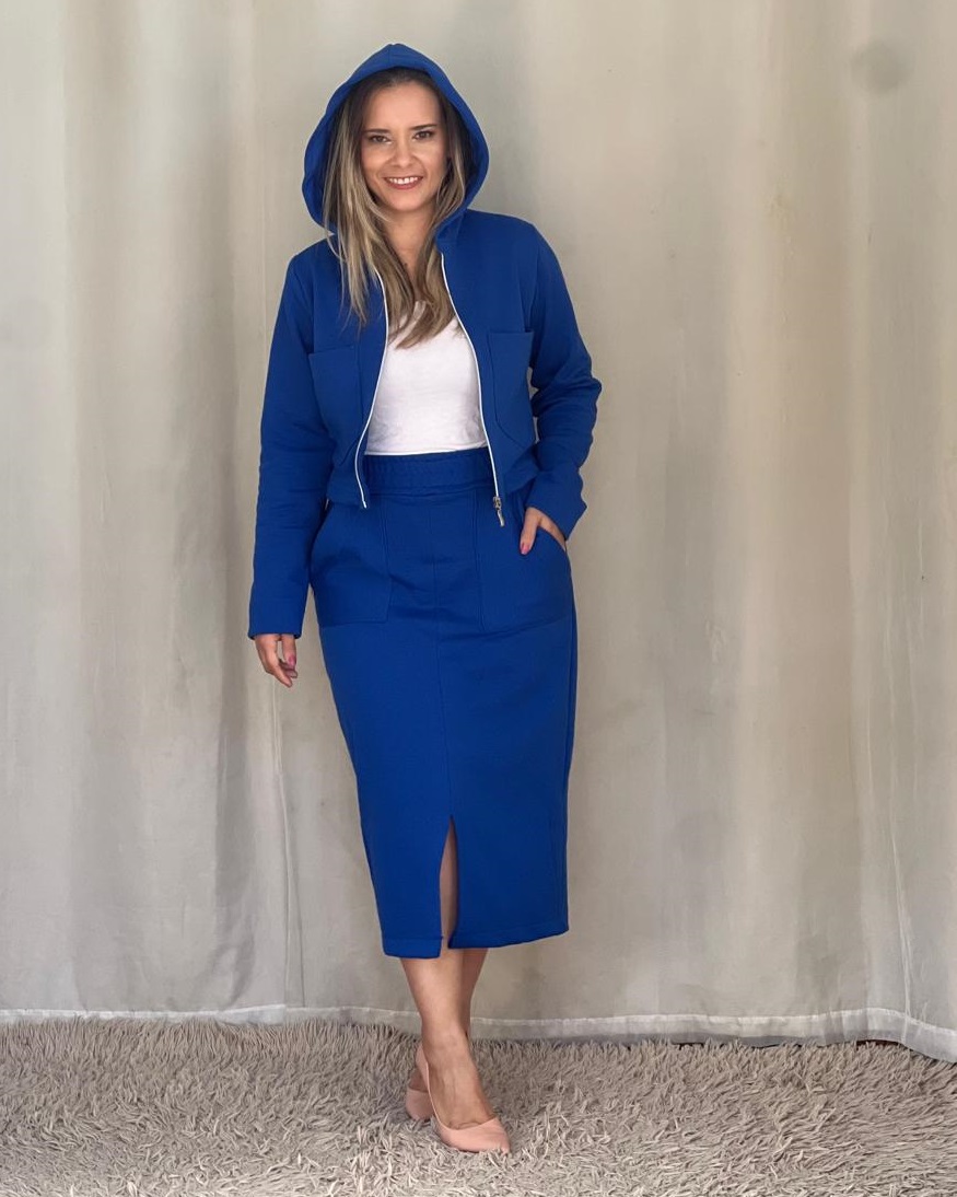 A Saia no moletom PA com elastano, midi flanelada por dentro!
