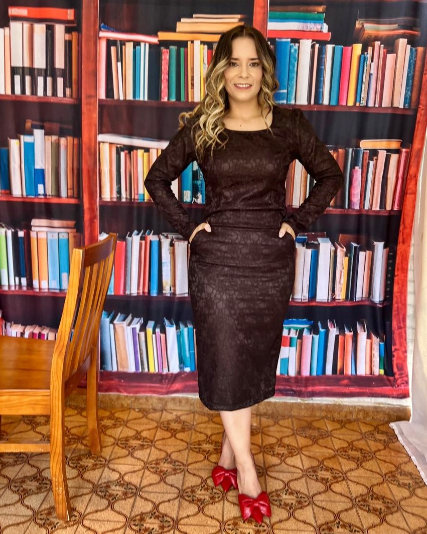 A Saia Juliana na renda forrada com elastano midi, com fenda na parte de traz, bastante elastano!