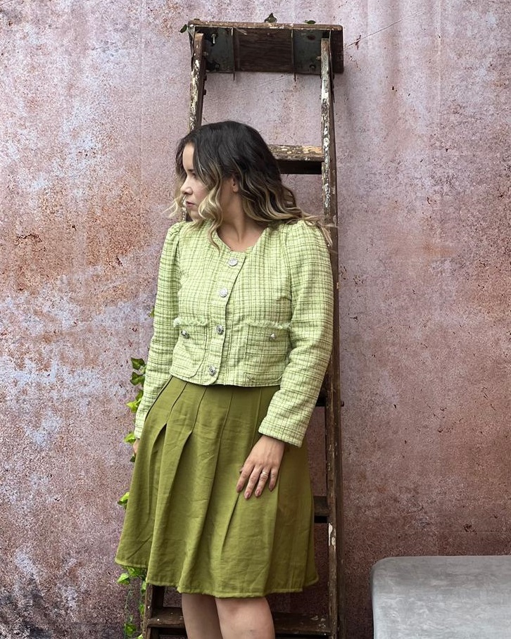 Saia larissaa no alfaitaria premium midi com pregas na frente e nas costas, com ziper invizivel com pensis e costuras na altura do cos trazendo um charme a mais na peça!