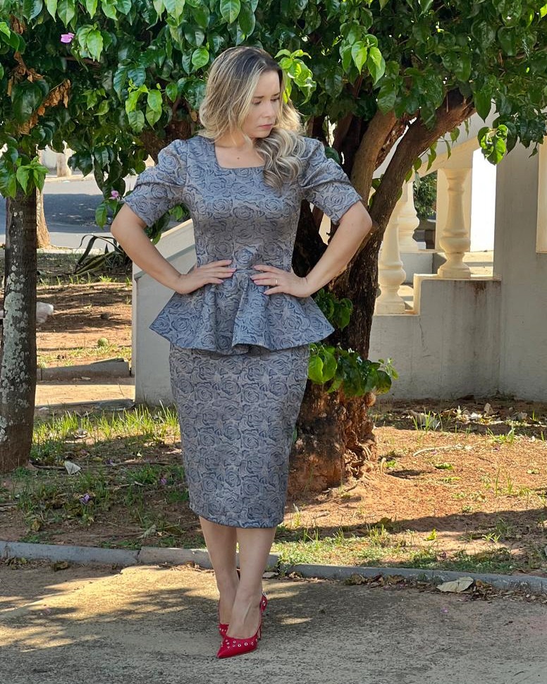 A Saia na renda jacar brocado midi, com fenda e ziper na parte de traz, bastante elastano!