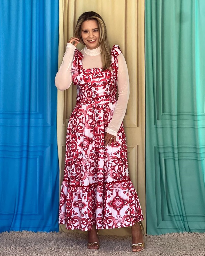 Vestido no crepe envolve sarjado forrado, costas de lastex, alças de amarrar, com detalhe de sianinha trazendo charme e elegancia , com blusa de tule manga longa gola alta pra usar embaixo !