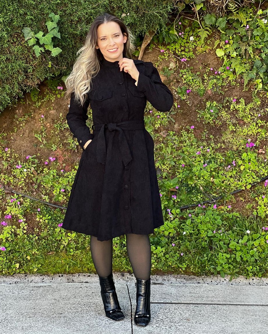 Vestido de veludo cotele manga longa no animal print com abotoadura frontal, leve elastano, tecido encorpado, cm bolsos nas laterais, modelegaem evaze!! com faixa de acinturar