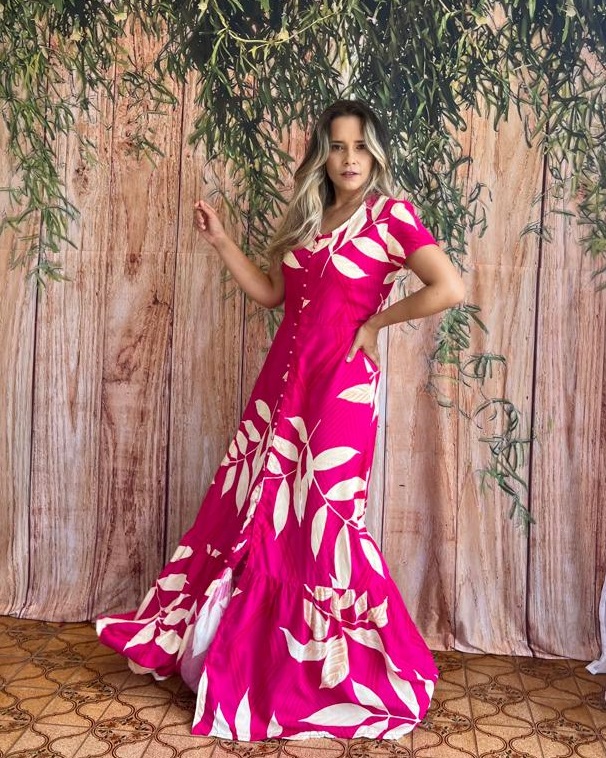 Vestido longo de viscolinho com botoes funcionais na frente trazendo todo charme e elegancia para a peça!