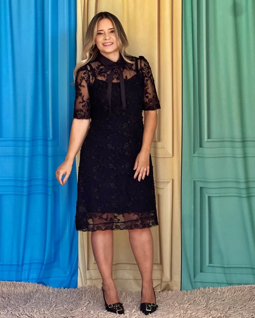 Vestido no tule de malha 3D com elastano preto com gola estruturada de tricoline com faixa q v pode amarrar na cintura ou no pescoço, vai com veste a parte!