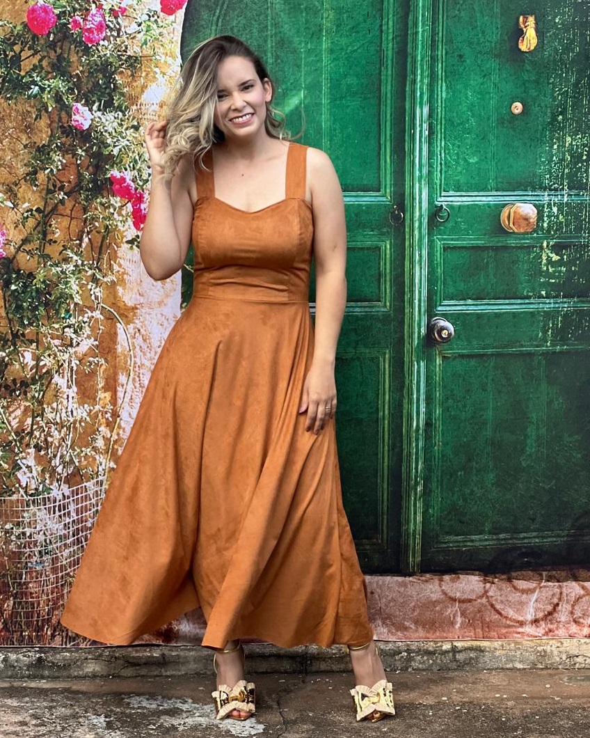 Vestido Silvana no suede de malha todo forrado, bastante elastano no caramelo de alça pra fazer sobreposição!!!!